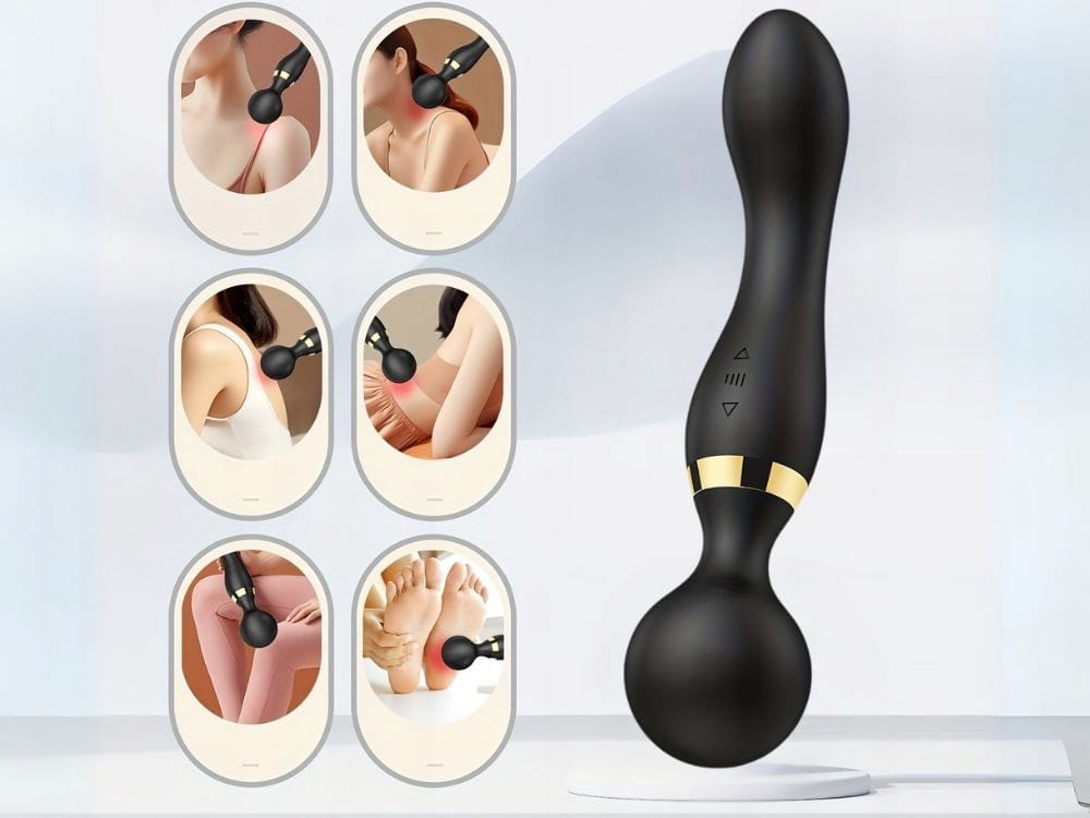 Experience the magic of 100% Vibration Massager, Massager Stick 360 Degrees rotation, Waterproof, Ergonomic Electric Handheld Dual Head Massager for Back, Travel-Friendly Massager (Round/Black).